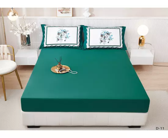 Husa de Pat Saltea - cu Elastic + 2 fete de Perna, Verde - FR352