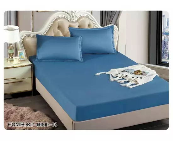 Husa de Pat Tercot cu Elastic + 2 Fete de Perna pentru Pat Dublu Albastru - EAT209