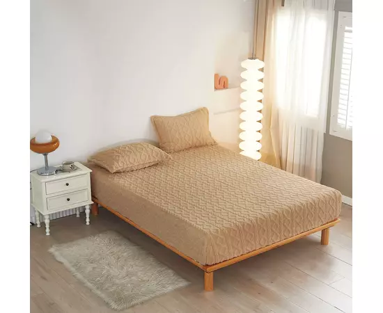 Husa De Pat Tricot Cu Elastic + 2 Fete De Perna Pentru Pat Dublu, Bej - XIA128