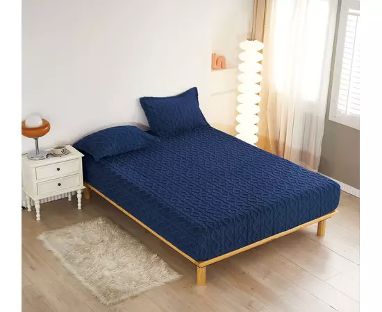Husa De Pat Tricot Cu Elastic + 2 Fete De Perna Pentru Pat Dublu, Bleumarin - XIA130