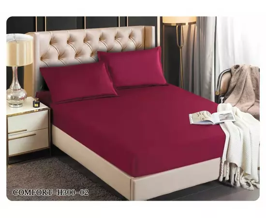 Husa de Pat Tercot cu Elastic + 2 Fete de Perna pentru Pat Dublu Bordo - EAT207