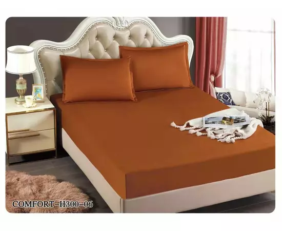 Husa de Pat Tercot cu Elastic + 2 Fete de Perna pentru Pat Dublu Caramiziu - EAT210