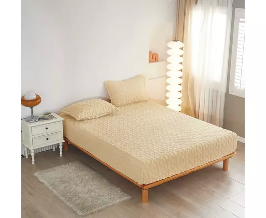 Husa De Pat Tricot Cu Elastic + 2 Fete De Perna Pentru Pat Dublu, Crem - XIA122