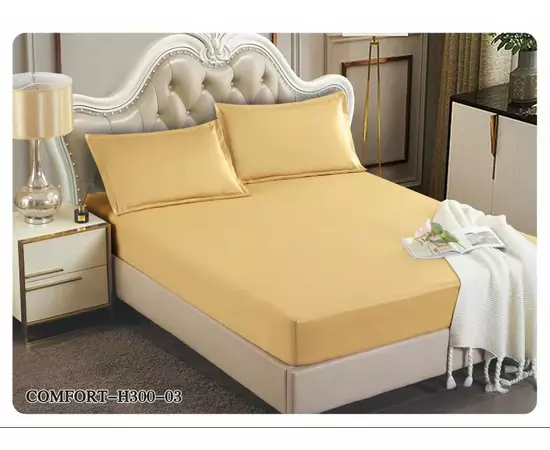 Husa de Pat Tercot cu Elastic + 2 Fete de Perna pentru Pat Dublu Galben Deschis - EAT206