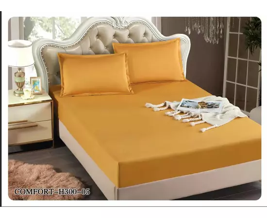 Husa de Pat Tercot cu Elastic + 2 Fete de Perna pentru Pat Dublu Galben Inchis - EAT203