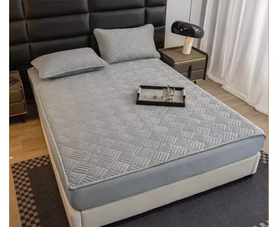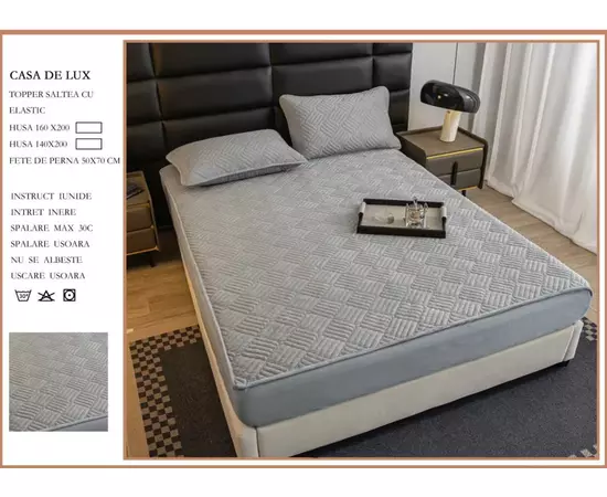 Husa de Saltea Tip Topper cu Elastic + 2 Fete de Perna pentru Pat Dublu GRI DESCHIS - ION22