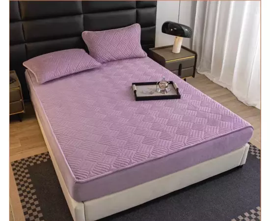 Husa de Pat Tricot cu Elastic + 2 Fete de Perna pentru Pat Dublu MOV - ION25
