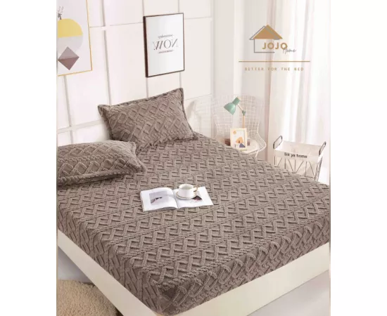 Husa De Pat Tricot Cu Elastic + 2 Fete De Perna Pentru Pat Dublu, Maro Deschis - JO969