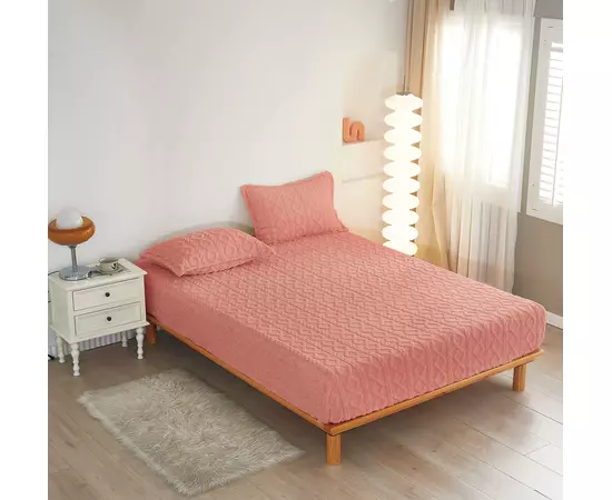 Husa De Pat Tricot Cu Elastic + 2 Fete De Perna Pentru Pat Dublu, Roz Pudra - XIA123