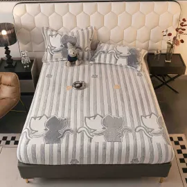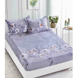 Husa de pat tricot cu elastic + 2 fete de perne pentru pat dublu, confectionate din Microfibra plusata