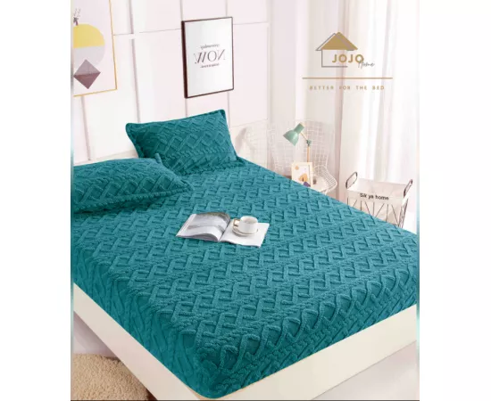 Husa De Pat Tricot Cu Elastic + 2 Fete De Perna Pentru Pat Dublu, Turcoaz - JO970