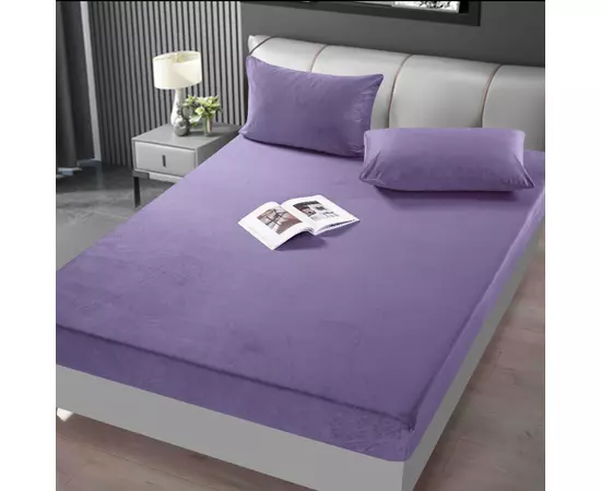 Husa de Saltea din Catifea + 2 Fete de Perna , Mov - JOJ550