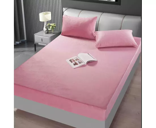 Husa de Saltea din Catifea + 2 Fete de Perna , Roz - JOJ551