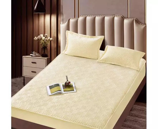 Husa de Saltea Tip Topper cu Elastic + 2 Fete de Perna Catifea, Galben 160x200 - JO997