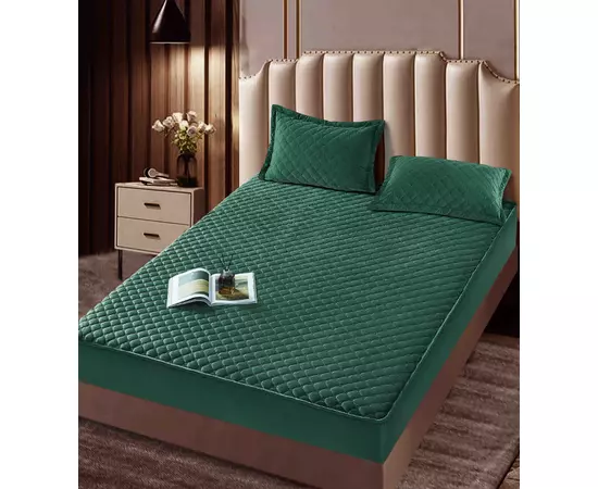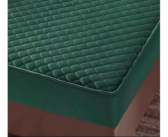 Husa de Saltea Tip Topper cu Elastic + 2 Fete de Perna Catifea, Verde 160x200- JO993
