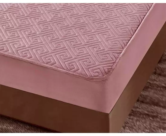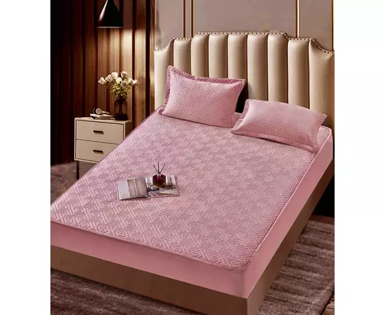 Husa de Saltea Tip Topper cu Elastic + 2 Fete de Perna Catifea, Roz Pudra 160x200cm - JO998
