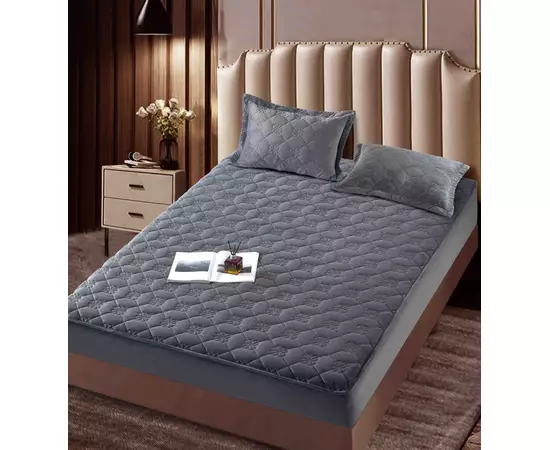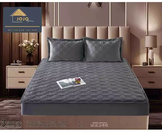 Husa de Saltea Tip Topper cu Elastic + 2 Fete de Perna, Gri Inchis 140x200 - JOJ556