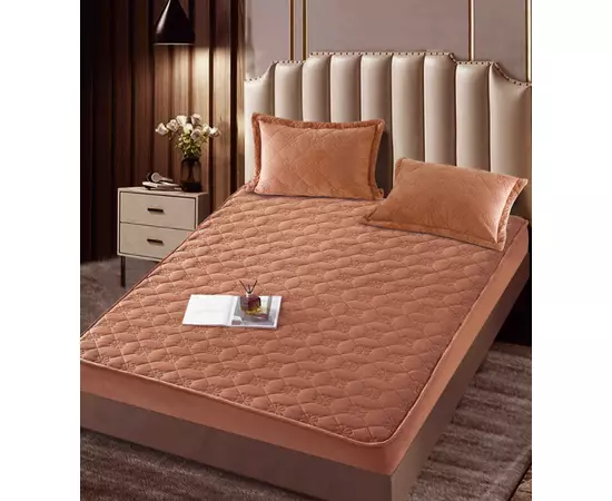 Husa de Saltea Tip Topper cu Elastic + 2 Fete de Perna, Maro Deschis 140X200 - JOJ05