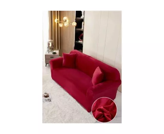 Husa Elastica din Catifea pentru Canapea 3 Locuri + Fata de Perna - JO573 Bordo