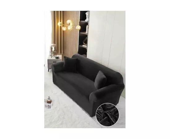 Husa Elastica din Catifea pentru Canapea 3 Locuri + Fata de Perna - JO579 Negru