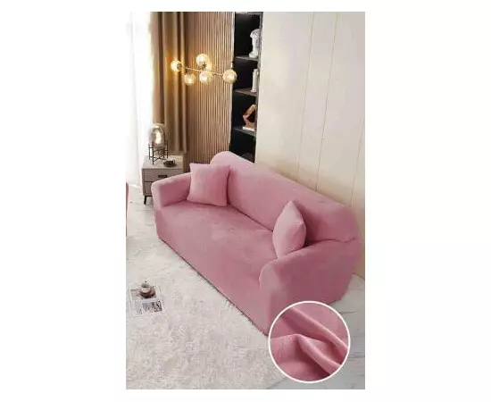 Husa Elastica din Catifea pentru Canapea 3 Locuri + Fata de Perna - JO581 Roz