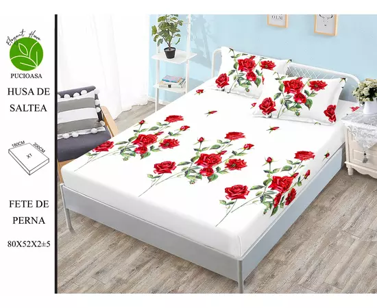 Husa imbraca perfect salteaua cu latime de 180 cm si lungime de 200 cm, atat pe fata cat si lateralele saltelelor, avand elastic de jur imprejur.