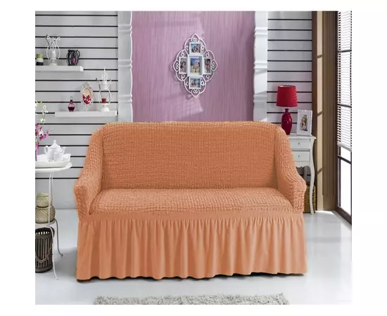 Husa pentru canapea 2 locuri, elastica si creponata, cu volane,