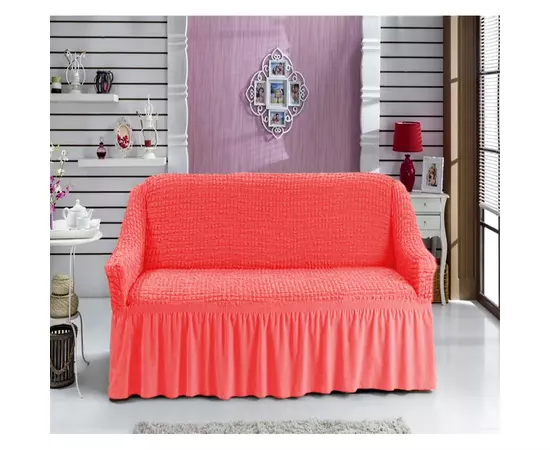 Husa pentru Canapea 2 Locuri, Elastica si Creponata, cu Volane, Corai- HEP5