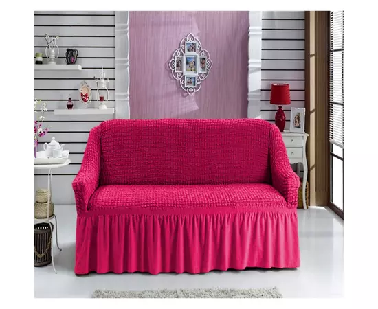 Husa pentru Canapea 2 Locuri, Elastica si Creponata, cu Volane, Fuchsia- HEP6