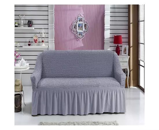 Husa pentru Canapea 2 Locuri, Elastica si Creponata, cu Volane, Gri deschis- HEP7
