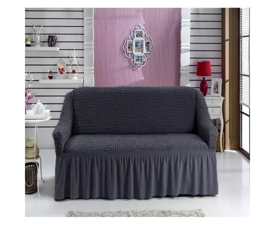Husa pentru Canapea 2 Locuri, Elastica si Creponata, cu Volane, Fume- HEP8