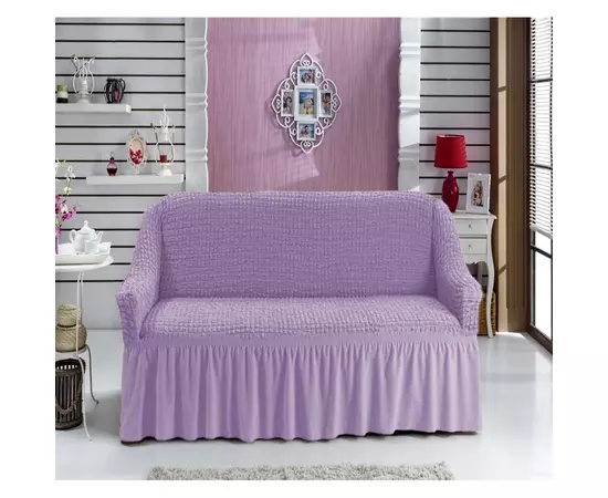 Husa pentru Canapea 2 Locuri, Elastica si Creponata, cu Volane, Lila- HEP2