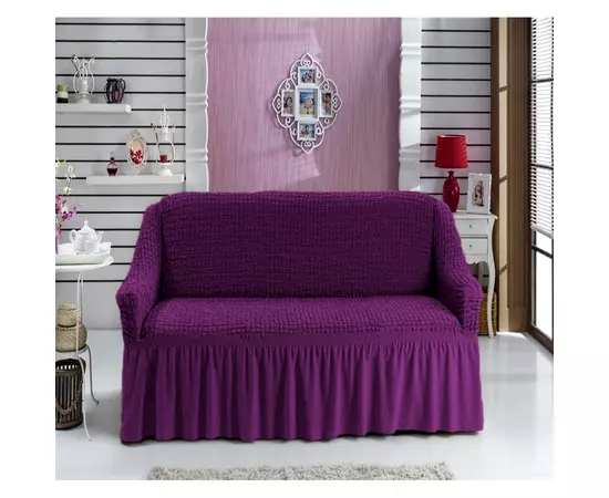 Husa pentru Canapea 2 Locuri, Elastica si Creponata, cu Volane, Mov- HEP10