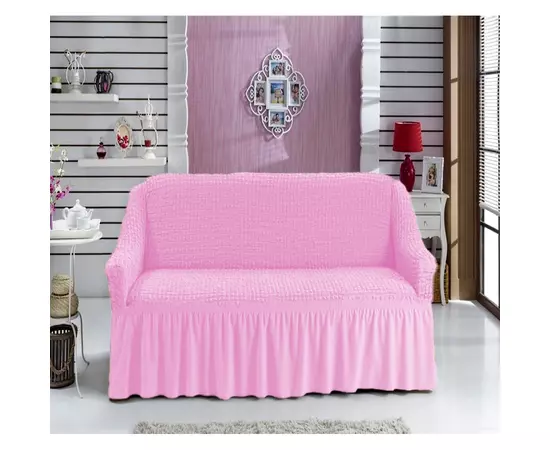 Husa pentru Canapea 2 Locuri, Elastica si Creponata, cu Volane, Roz- LJ478