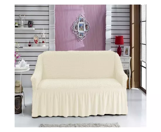 Husa pentru Canapea 2 Locuri, Elastica si Creponata, cu Volane, Unt- HEP11