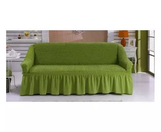 Husa pentru Canapea 2 Locuri, Elastica si Creponata, cu Volane, Verde- HEP12