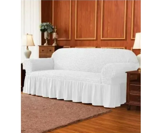 Husa pentru Canapea 3 Locuri, Elastica si Creponata, cu Volane, Alb - AHM21