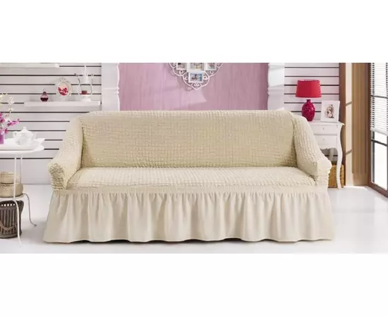 Husa pentru canapea 3 locur, elastica si creponata, cu volane