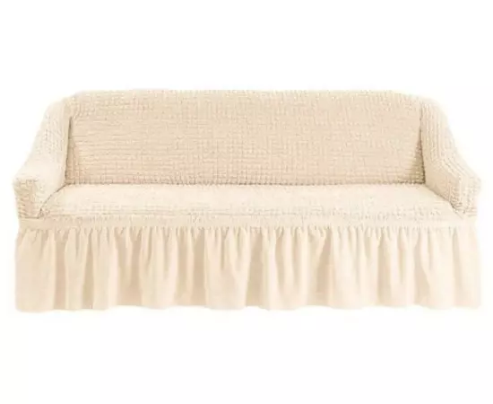 Husa pentru Canapea 3 Locuri, Elastica si Creponata, cu Volane, Culoarea Untului-HEP18