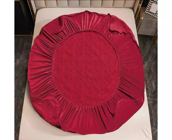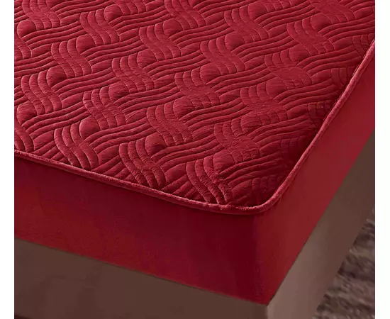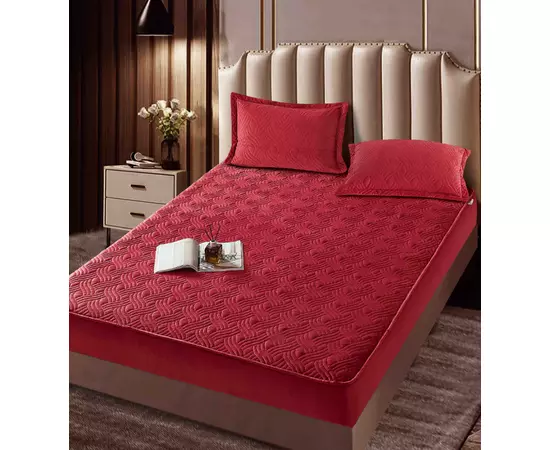 Husa pentru saltea tip topper cu elastic + 2 Fete de perna catifea, Bordo 180x200cm - JOJ561