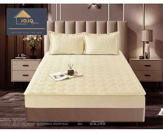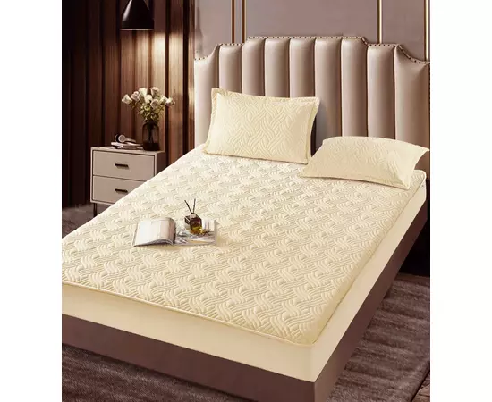 Husa pentru saltea tip topper cu elastic + 2 Fete de perna catifea, Unt 180x200cm - JO945