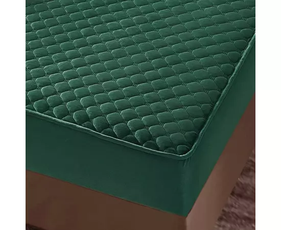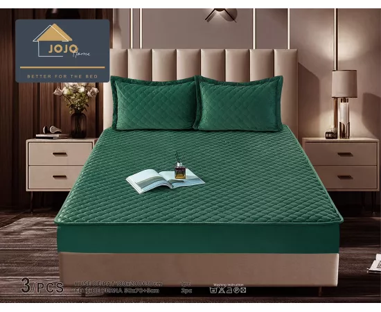 Husa pentru saltea tip topper cu elastic + 2 Fete de perna catifea, Verde 180x200cm - JO943