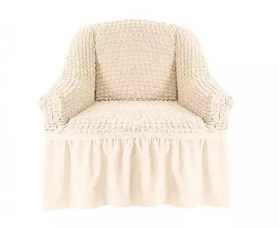 Husa universala fotoliu elastica si creponata cu Volane Bej Natur, Artforhome-HEP61