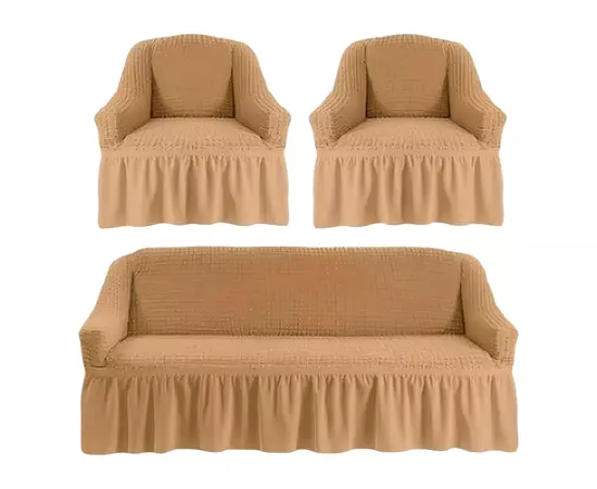 Huse Elastice si Creponate, Canapea 3 Persoane + 2 Fotolii, Bej - HEP131