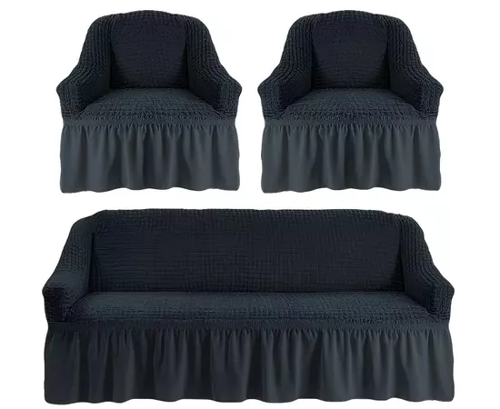 Huse Elastice si Creponate, Canapea 3 Persoane + 2 Fotolii, Fume - HEP133