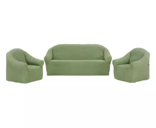 Huse Elastice si Creponate fara Volane, Canapea 3 Persoane + 2 Fotolii, Verde - HF21