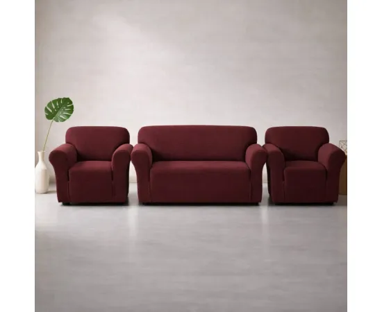 Huse Elastice, Canapea 3 Persoane + 2 Fotolii, din Lycra, Bordo - AHM03