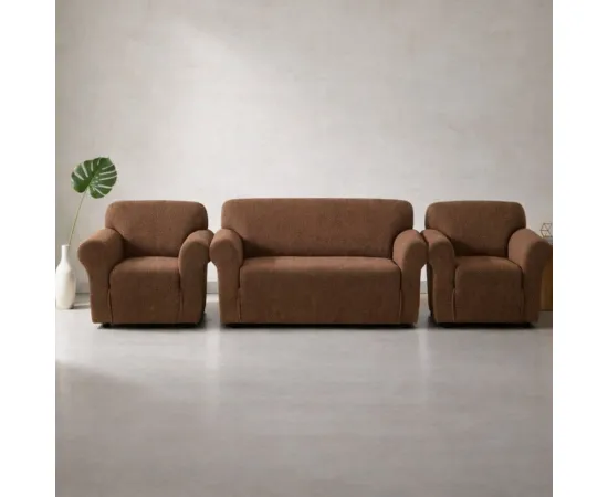 Huse Elastice, Canapea 3 Persoane + 2 Fotolii, din Lycra, Maro Deschis - AHM04