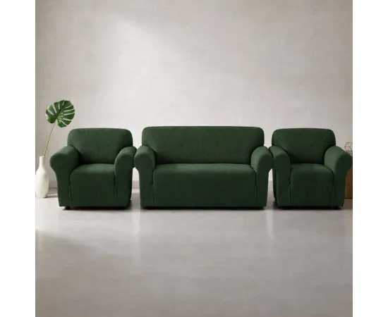 Huse Elastice, Canapea 3 Persoane + 2 Fotolii, din Lycra, Verde Inchis - AHM08