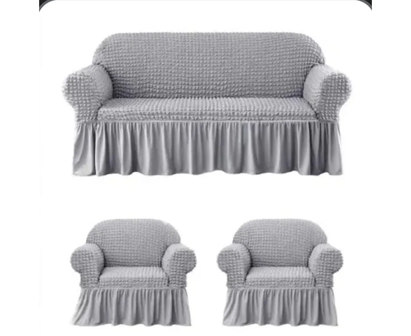 Set de huse pentru canapea si 2 fotolii tip 3.1.1. – pachetul include o husa pentru canapea de 3 locuri si doua huse pentru fotolii.